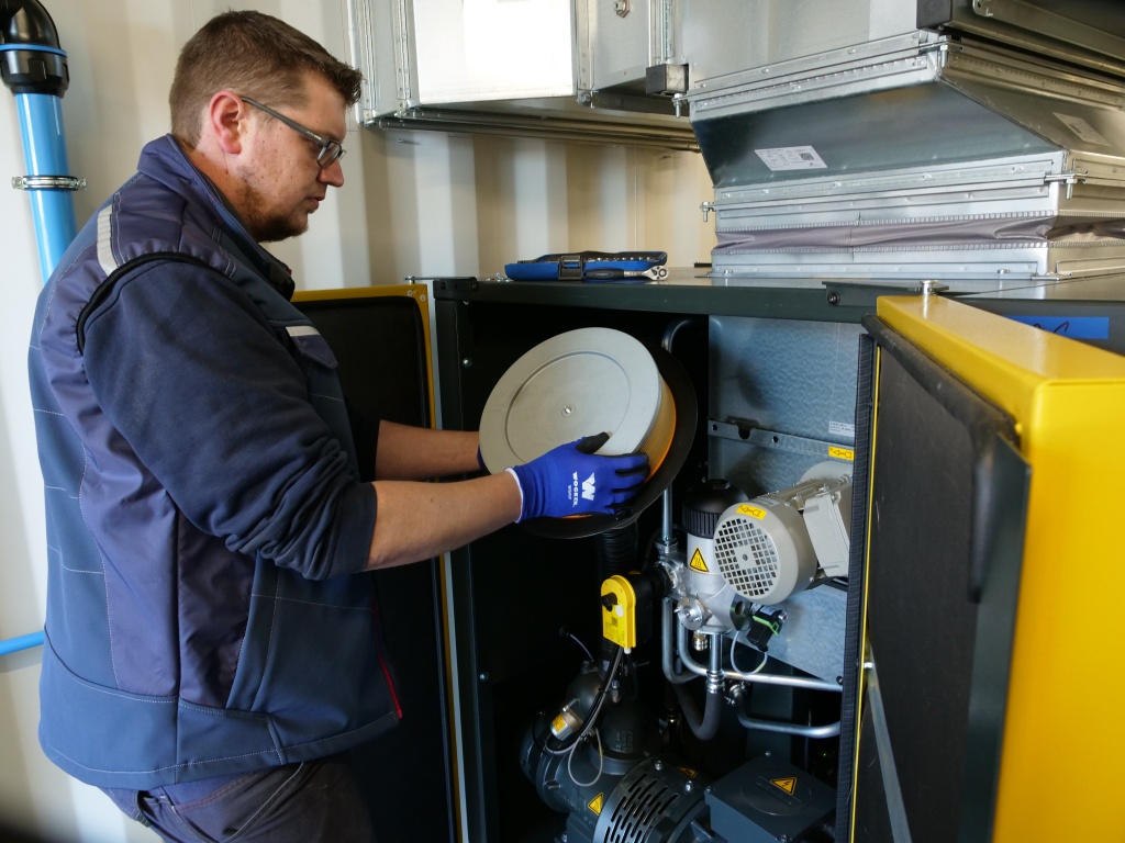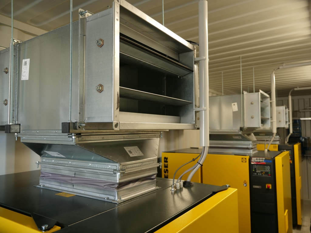 „Mobile“ Druckluftanlage mit Abwärmenutzung, BAFA-Förderung und Dekoration für Ziegelwerk in 5 Wochen umgesetzt